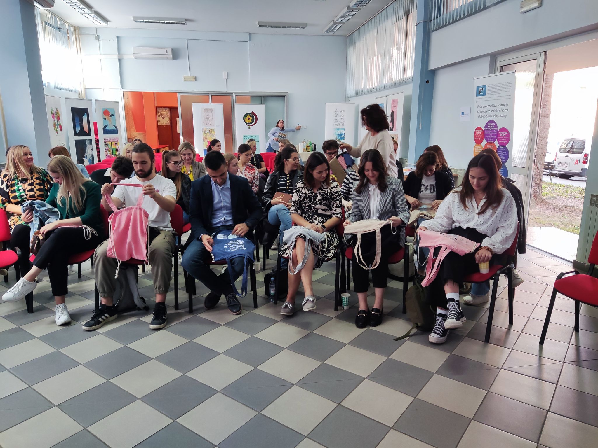 Drago nam je što su nam se u pripremu i provedbu ove aktivnosti uključili i naši volonteri – Dora Vuković, Antonia Dražić, Lejla Jerab i Stjepan Benkus, a izuzetno smo ponosni što su sami dizajnirali (Dora i Stjepan) promotivni materijal – vrećice s porukama podrške svojim vršnjacima. Poruke podrške mladih smo izložili i u prostoru gdje se aktivnost održavala. Sjajne ilustracije učenika Škole za primijenjenu umjetnost i dizajn iz Osijeka, projekta Kužim te, vrlo su poticajne i informative i imale su snažan utjecaj u zajednici.