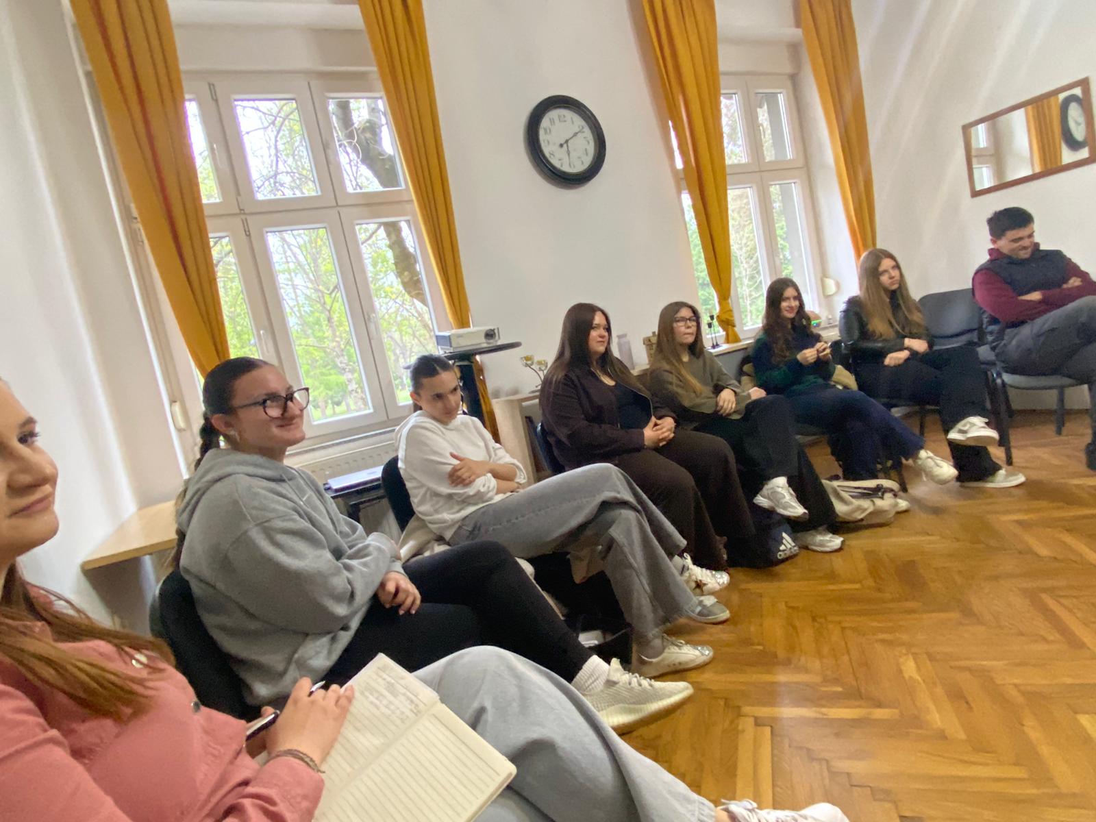 Kroz radionicu su nas vodili Vukašin i Magdalena, koji su na odličan način spojili ono što kaže struka s onim što mladi stvarno žive svaki dan. Nije bilo “predavanja s visoka” – nego konkretni primjeri, realne situacije i pitanja koja su otvorila prostor za razmišljanje: