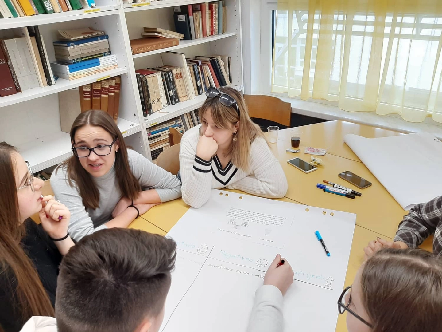 U vrlo ugodnoj atmosferi, izrazito aktivni, pozitivni ali i osviješteni učenici ove škole (njih 25) zajedno sa 5 predstavnika škole (iz pozicije donositelja odluka) cjelodnevnoj radionici imali su priliku raspravljati o sudjelovanju učenika u životu škole i donošenju odluka u njihovoj školi.