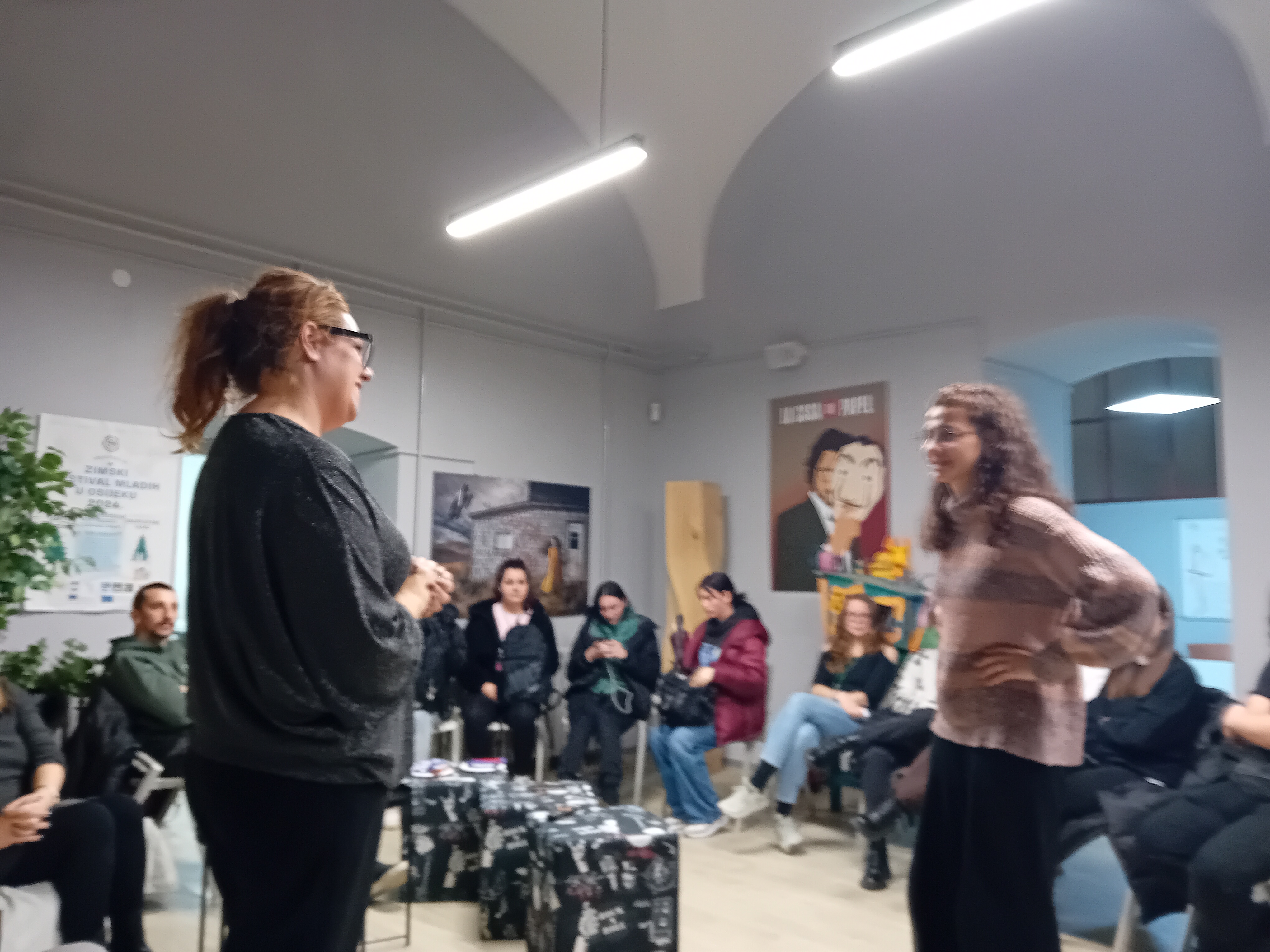 Interaktivna šetnja gradom, popraćena likovnom radionicom oslikavanja platnenih vrećica, dodatno je obogatila kulturni i kreativni duh festivala. Nastavnica povijesti umjetnosti Monika Gusić te studentice Livija Kajfeš i Patricia Lončarević inspirirale su sudionike da kroz umjetnost izraze svoj doživljaj Osijeka, a vrlo lijepe vrećice ostat će trajni podsjetnik na ovaj , prvi zimski festival mladih u gradu i doprinijet promišljaju o drugačijem pristupu i