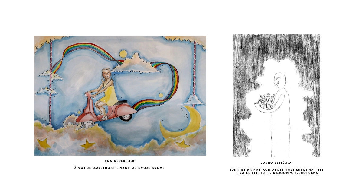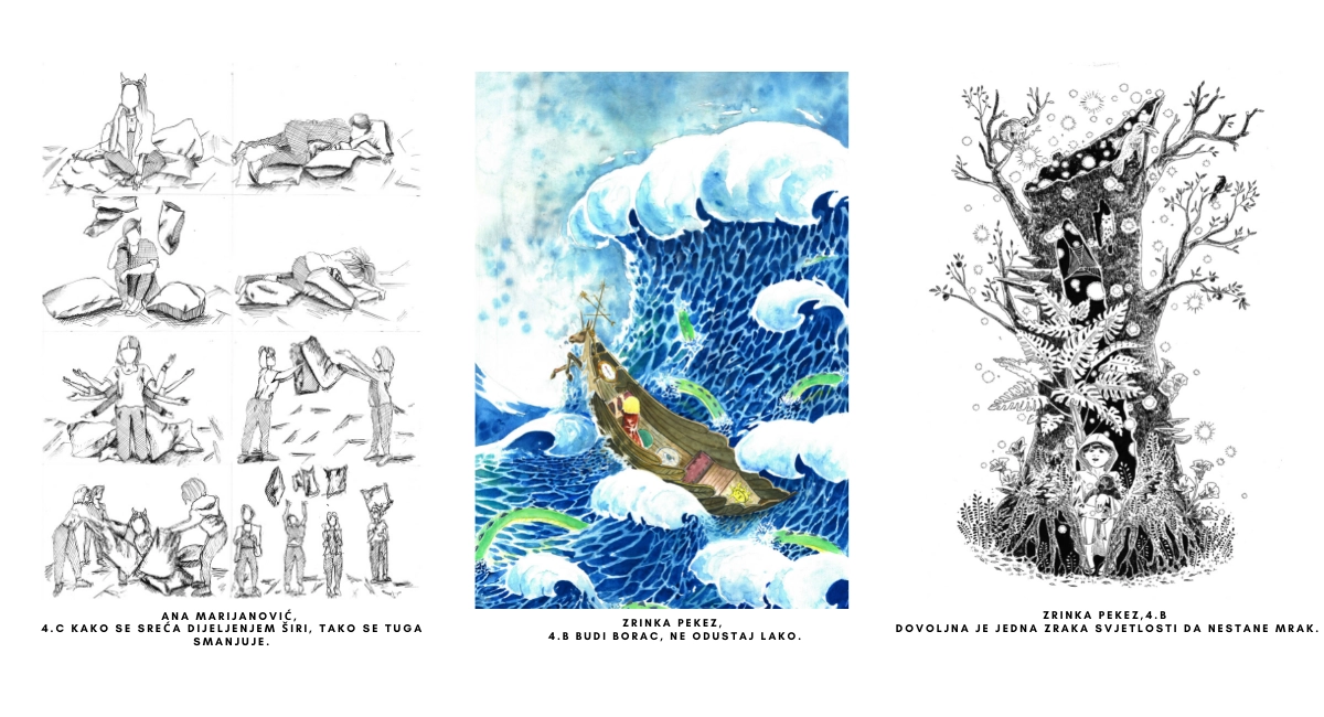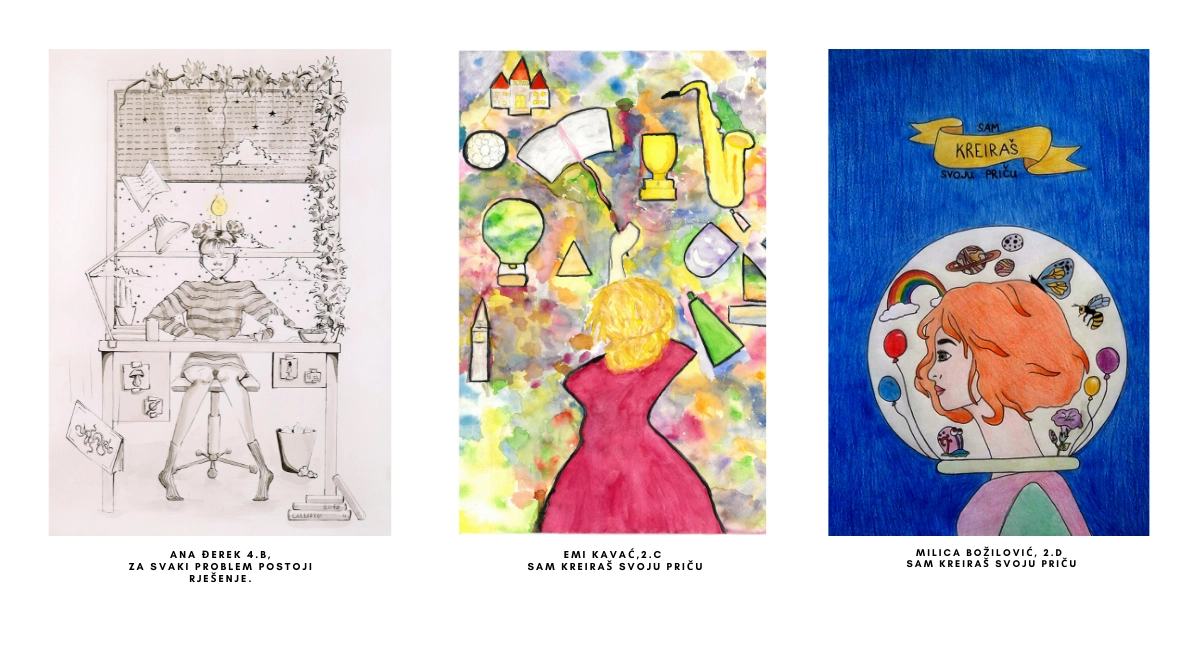 Likovne uratke za izložbu kreirali su učenici 1. – 4. razreda Škole za primjenjenu umjetnost i dizajn Osijek, uz mentorstvo svojih profesora.