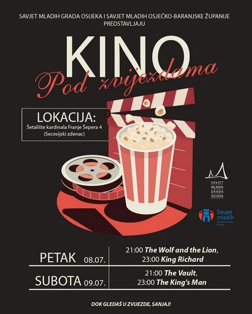 U sklopu manifestacije Osječkog ljeta kulture 2022. godine, Savjet mladih Osječko-baranjske županije u suradnji sa Savjetom mladih Grada Osijeka i ove godine, već tradicionalno, organizira „Kino pod zvijezdama“ koje će se održati 8. i 9. srpnja 2022. godine (petak i subota) kod „Secesijskog zdenca“ na šetalištu kardinala Franje Šepera u Osijeku.
