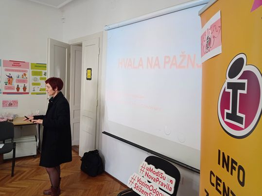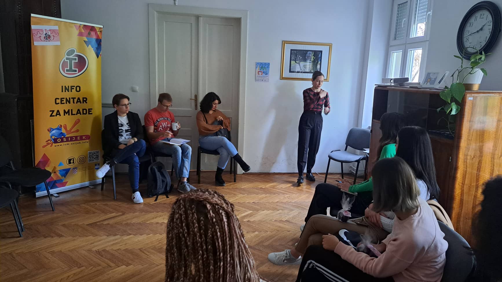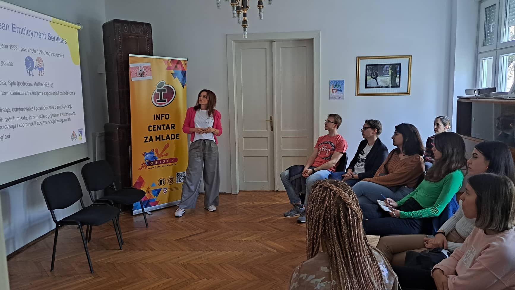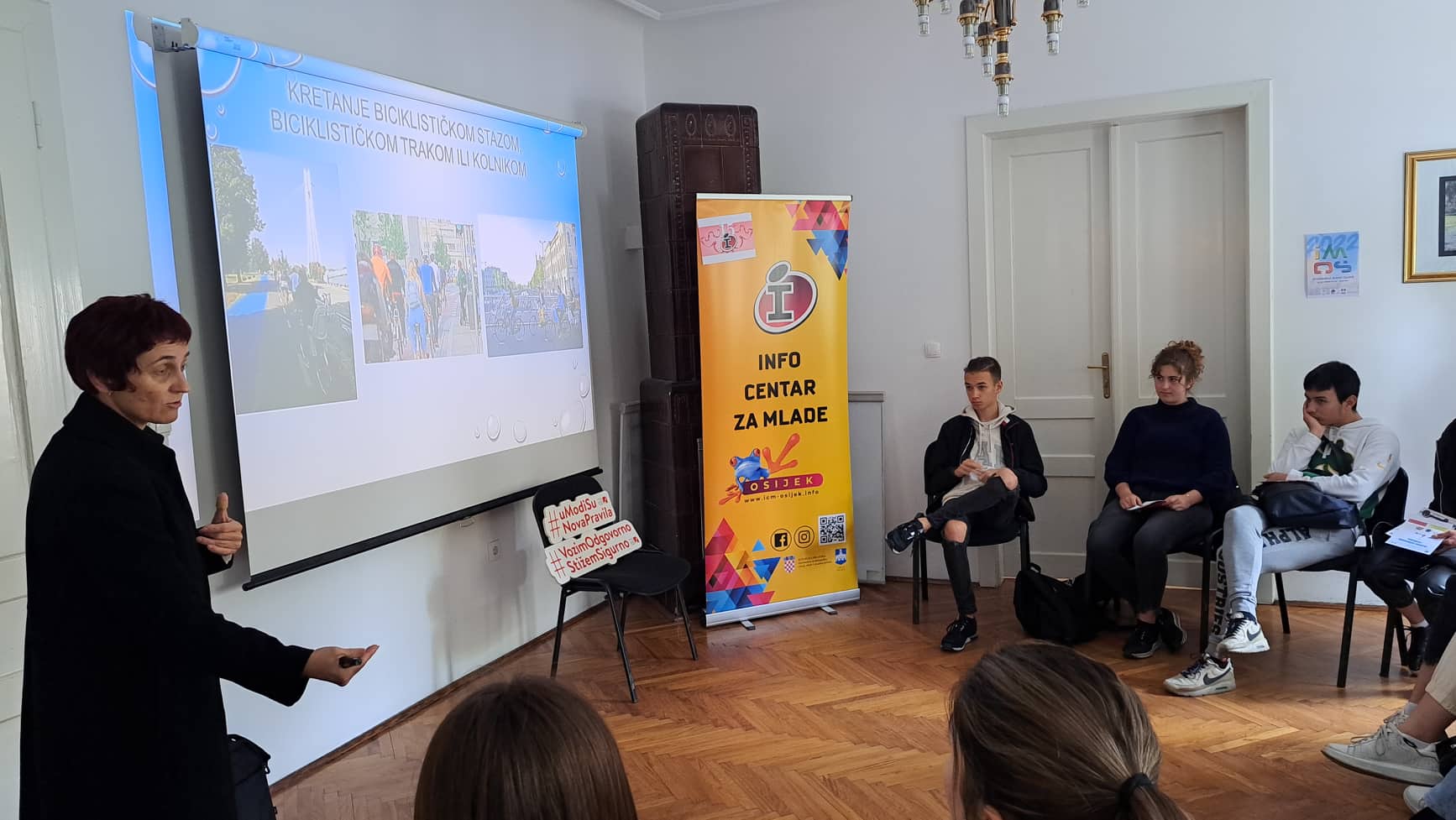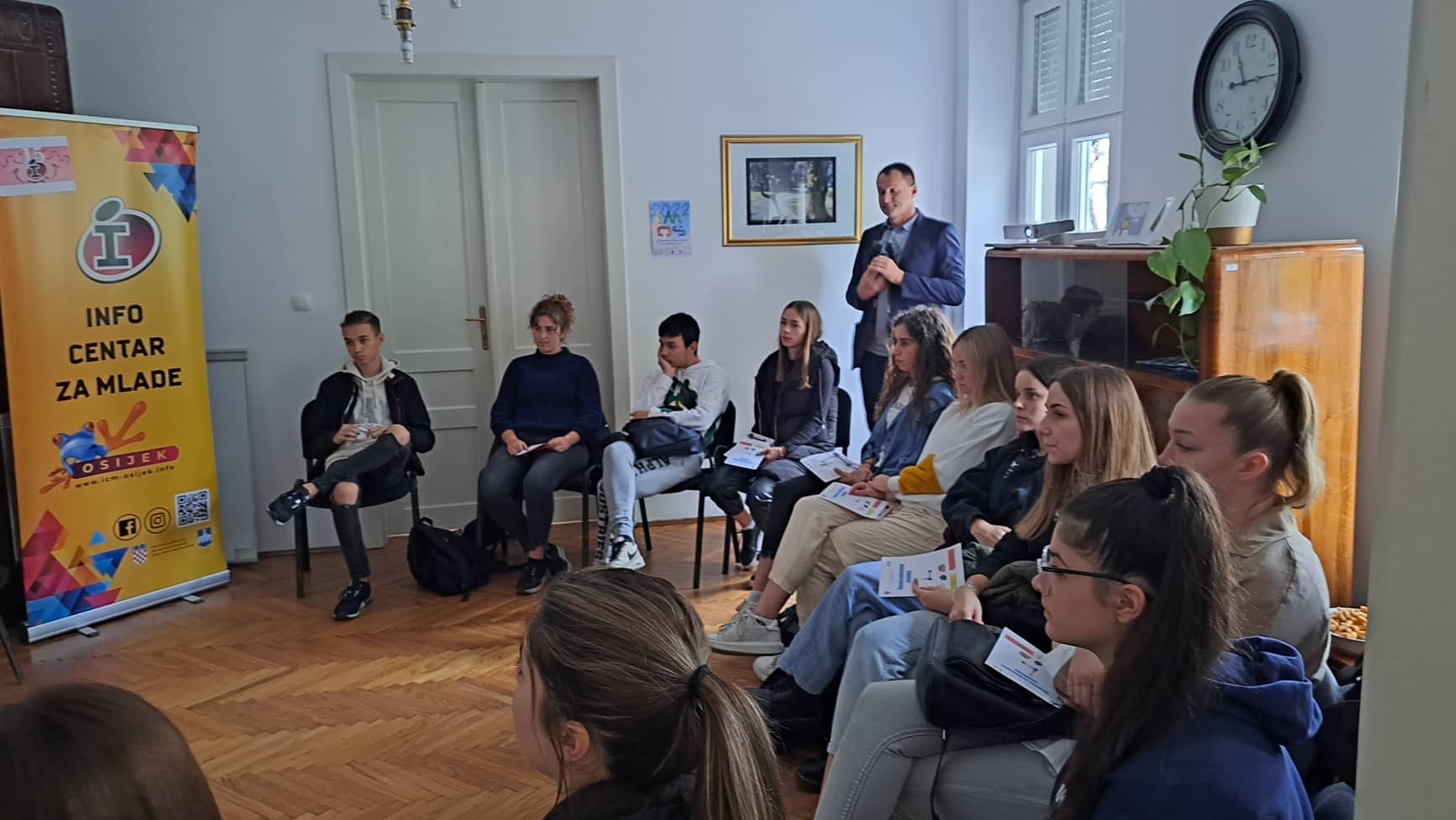 Eleonora Matić i Robert Škorvaga predstavili su aktualne propise vezano za nova prometna pravila - posebice za osobna prijevozna sredstva (romobile). Ivana Šarić (EURES) i Jagoda Ringel Kovačević (CISOK), predstavnice Hrvatskog zavoda za zapošljavanje zainteresiranima su predstavile pogodnosti koje nezaposleni mogu koristiti prilikom traženja posla u inozemstvu, odnosno pri prekvalifikaciji za tražena zanimanja (vaučeri za obrazovanje). Ivana Sović, iz Nutricionističkog savjetovališta Hrvatskog zavoda za javno zdravstvo u Osijeku, pored osnovnih savjeta za kvalitetnu i urovnoteženu prehranu mladih, predstavila je mogućnost korištenja besplatnog savjetovanja od strane nutricionista. Angelse Madueno Triguillos i Enrique Martos Sanchet iz Cordobe, Španjolske ispričali su svoju priču, iskustvo dolaska u Osijek kroz projekt Europskih snaga solidarnosti, kako bi mladima prenijeli što sve mogu očekivati i kako se pripremiti za odlazak na volontiranje u EU te ih na taj način motivirali da se upuste u ovo iskustvo učenja, usavršavanja i druženja.