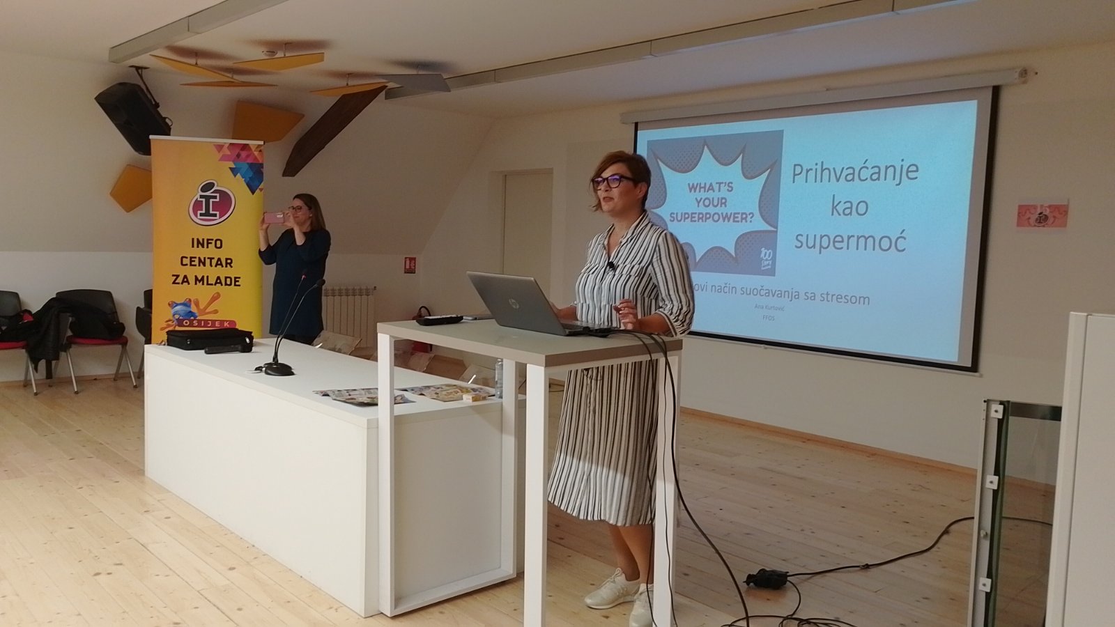 Dan je završio sa predavanje profesorice Ane Kurtović, s Odsjeka za psihologiju Filozofskog fakulteta u Osijeku, koja je mladima stres učinila manje neugodnim, kroz novi psihologijski koncept  - prihvaćanje stresa. Jako je važno naučiti i primjenjivati učinkovite tehnike nošenja sa stresom jer ako je izvor stresa nešto što ne možemo promijeniti ili zaustaviti, onda jedino možemo učiti kako promijeniti svoju reakciju. Metoda se, najjednostavnije svodi na održavanje pažnje na sadašnjem trenutku sa stavom znatiželje i prihvaćanja.
