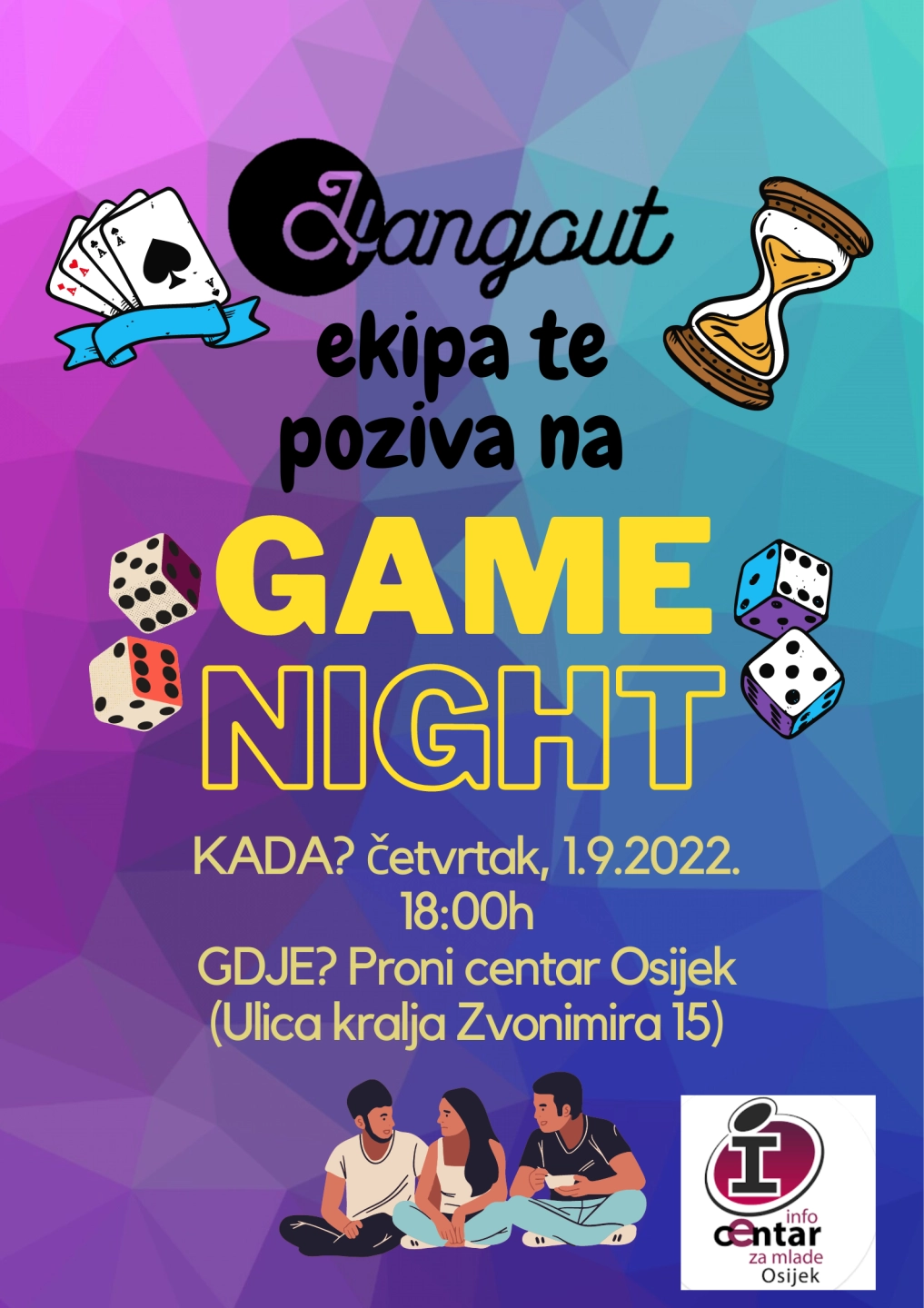 Pridružite nam se u četvrtak, 1.9.2022. u 18 sati u PRONI centru/Info-centru za mlade Osijek (Kralja Zvonimira 15 , na Noći društvenih igara.